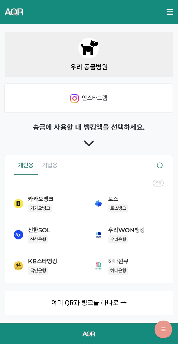 다양한 페이. SNS 링크. 간편 송금. 하나의 QR과 URL에.